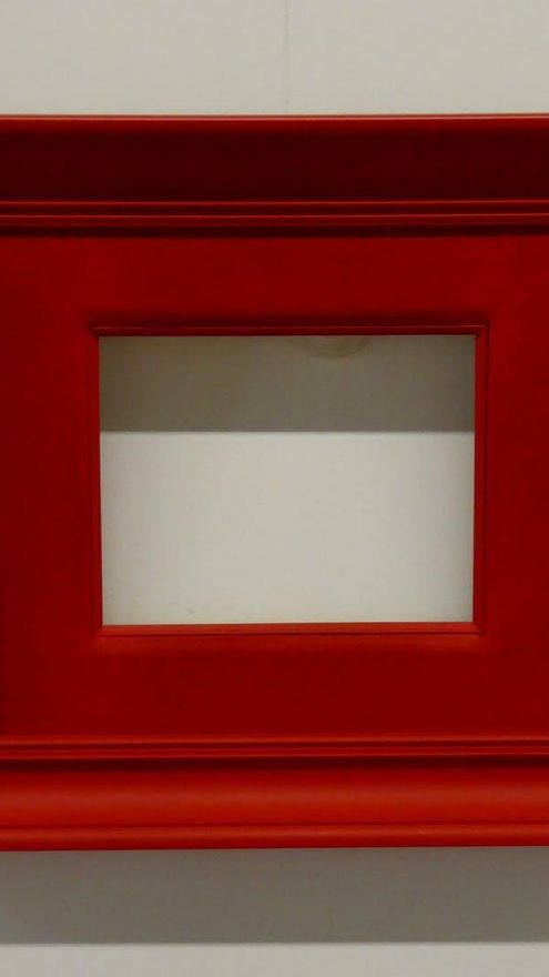 ¿Por qué no se pintan de rojo los marcos de los cuadros? Porque un marco rojo empujaría la pintura al fondo y convertiría la pared en su propio marco. Manuel Bocanegra ha dejado vacío, intencionadamente, el espacio enmarcado porque, se ponga lo que se ponga, pasaría a ser paisaje, al igual que la pared que la sostiene.