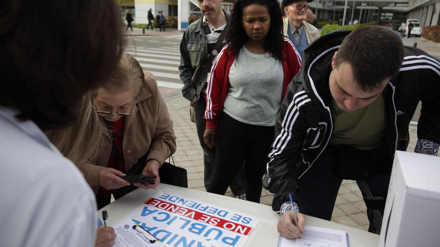 En medio de la jornada de huelga general de la sanidad madrileña, el consejero responsable del plan privatizador que la ha provocado, Javier Fernández Lasquetty, ha calificado de “parodia” la consulta popular que se viene realizando en hospitales, centros de salud y espacios públicos madrileños acerca de las medidas adoptadas por su departamento. “Parodia de medios democráticos”, ha abundado. Quizá ha estado alentado por los datos de seguimiento de la huelga: los propios convocantes (Amyts, Csit, Satse, CC OO, UGT) han hablado de un 60%. Sanidad lo ha dejado en un 6,4%. En cualquier caso son, como mínimo, 20 puntos menos que en las primeras movilizaciones de finales de 2012 para los 75.000 trabajadores del sector. “No esperábamos un seguimiento masivo” han dicho en el sindicato de médicos Amyts. Más bien “un símbolo de rechazo”. Los centros estaban llamados a funcionar como en un día festivo pero en muchas sedes la actividad fue más bien normal.