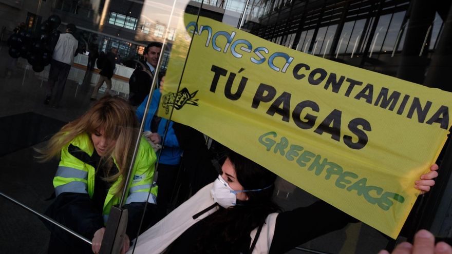 Tres acciones simultáneas en las sedes de las principales eléctricas de España. A primera hora de este jueves, la organización Greenpeace ha ocupado los edificios de Endesa, Gas Natural-Fenosa e Iberdrola en Madrid, Barcelona y Bilbao. LLevaban el mensaje “ellos contaminan, tú pagas”.