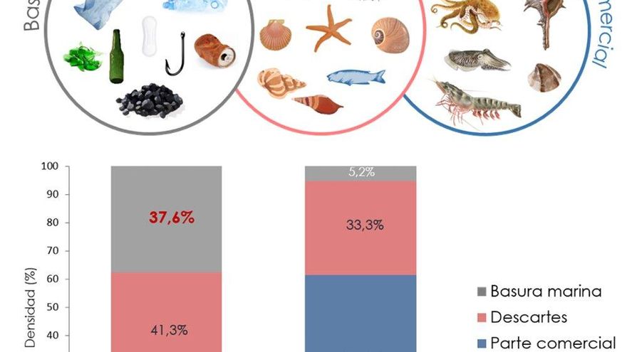 Nuestro trabajo revela que, en zonas cercanas a áreas muy pobladas con rutas de navegación transitadas, la basura puede suponer hasta el 38 % de la captura en la red de pesca. Se encontraron densidades de basura que oscilan de los 198 a los 393 kg por km².