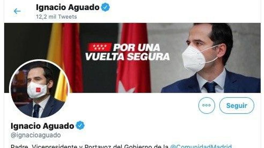 Aguado mantiene fijado un tuit en el que celebra el acuerdo con Sanidad después de que la Comunidad de Madrid haya votado en contra de la medida