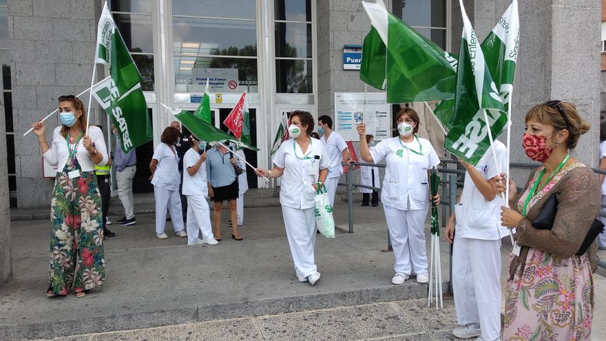 Una cincuentena de trabajadores salió a la puerta del centro para reclamar una intervención rápida de la Comunidad de Madrid. De momento, solo los médicos de Primaria han convocado huelga, pero otros colectivos no la descartan. “Esos 80 millones dependerán de cómo se aprueben los presupuestos año a año, y no sabemos dónde irían. ¿A contratar más enfermeras, que son las máximas garantes de los cuidados en Primaria?”, señaló Jesús García Ramos, portavoz del sindicato de enfermería Satse. “Ya está bien de promesas, queremos realidades. Estamos dispuestos a ir a la huelga si no se escuchan nuestras reivindicaciones”, avisó.
