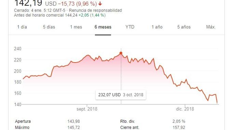 Apple se hunde un 38% en bolsa en tres meses y vive su peor jornada en seis años