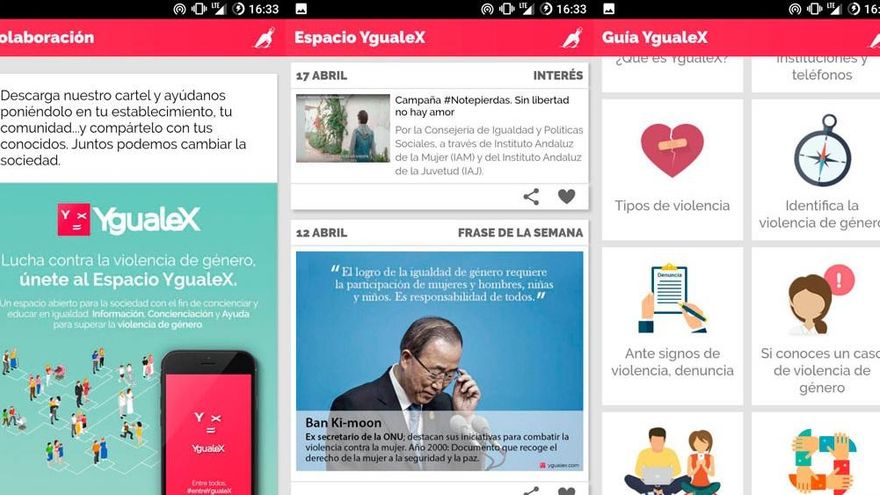 Ygualex fue lanzada en abril. Es una de las últimas aplicaciones para combatir el problema de la violencia machista. Incluye multitud de guías y documentos tanto para identificar signos de violencia como para actuar ante ello. Tiene un aspecto juvenil y colorido, aunque no se dirige exclusivamente al público adolescente. Como Libres, incluye accesos rápidos al 016 y al 112, material de consulta, permite intercambiar mensajes y se actualiza semanalmente. El único pero es que el icono de la aplicación no se camufla en el teléfono. Dispone de versión para Android e iOS.