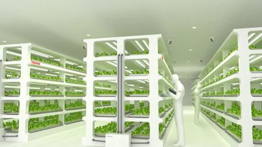 El fabricante de electrónica Panasonic cuenta con una fábrica en Singapur que produce diez tipos de cultivos diferentes, sacando al mercado local un total de 3,6 toneladas al año en un país que importa el 90% de su comida. Toshiba tiene la suya propia en la ciudad costera de Yokosuka, en Japón, donde usa sus propias máquinas y materiales para finalmente crear bolsas de ensalada, con tres variedades de hoja. En 2015 la compañía prevé vender tres millones de estas bolsas.