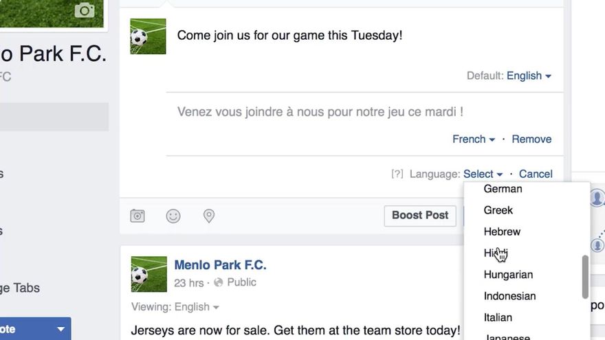 Facebook te permitirá publicar los mensajes en 44 idiomas