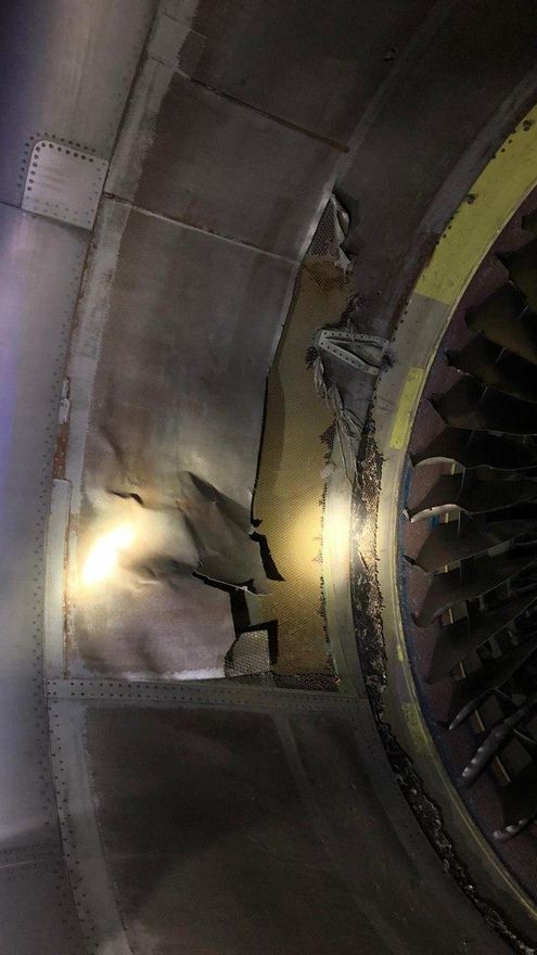 El avión de Air Canada averiado consiguió aterrizar este lunes sin incidencias a las 19.07 hora local tras horas sobrevolando el espacio aéreo cercano al aeropuerto de Madrid-Barajas. El aparato perdió piezas del tren de aterrizaje, que entraron en el motor izquierdo, por lo que tuvo que permanecer en torno a tres horas quemando combustible antes de aterrizar. Estas son las imágenes del estado de la rueda y el motor del avión: