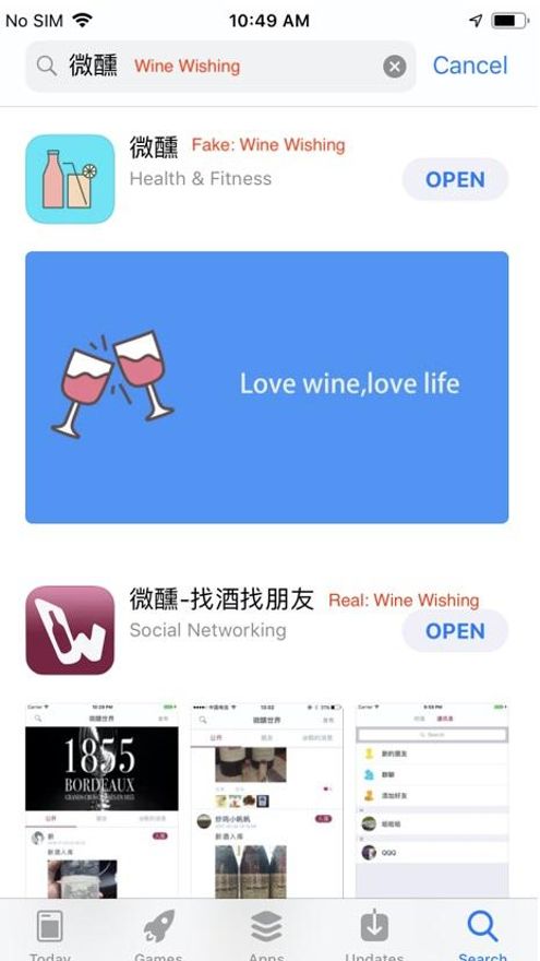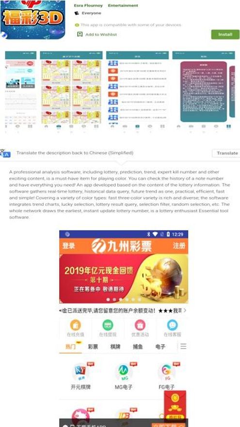 En el caso de la tienda de Google, al ir a instalar la app comenzaba automáticamente una descarga de un archivo .apk (Android application package) con el nombre “com.bxvip.app.jiuzhouzy”. La app tenía la misma interfaz que las aplicaciones falsas que se podían descargar en la App Store y todas mentían en su descripción: algunas decían ofrecer información sobre vinos, el tiempo meteorológico o viajes, pero en realidad intentaban enganchar al usuario para que se descargase algo totalmente diferente orientado al juego.