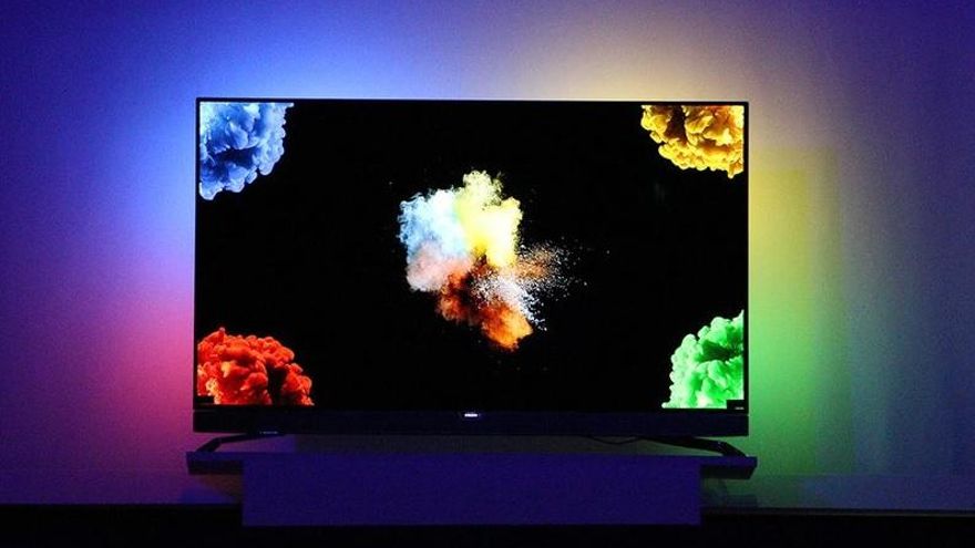 Philips dice que es la primera televisión OLED del mundo en 4K con Ambilight. En Japón ya han comenzado a probar las emisiones en 8K, pero de momento, el estándar del mercado es el 4K (una resolución de imagen que deja muy atrás al HD, con 4.000 píxeles de resolución horizontal). El Ambilight es un sistema con el que el televisor proyecta luz desde los laterales para aclimatar la iluminación a lo que se esté viendo y acorde al número de personas que haya en la sala. El aparato cuenta también con Android y sonido 6.1.