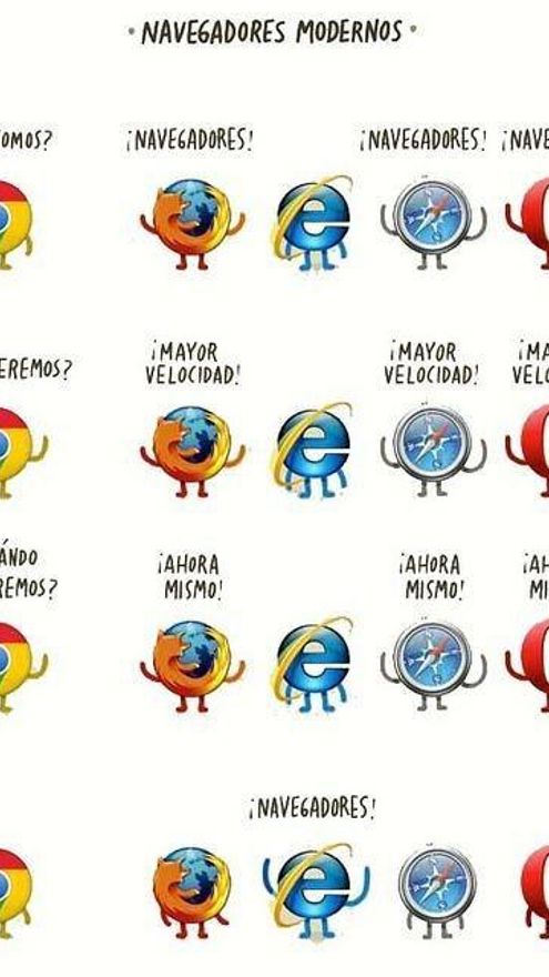 La irrupción de Firefox en 2005 y la aparición del navegador de Google, Chrome, tres años más tarde se erigieron como la competencia de la “niña bonita” de Microsoft. Esa competencia ha ido mermando los datos de uso del IE año tras año. Y ya se sabe, como en Internet lo que no falta es talento, las preferencias de los usuarios han quedado demostradas en forma de memes e imágenes, algunas ya tan míticas como la imagen de los cuatro navegadores pidiendo a voces mayor velocidad.