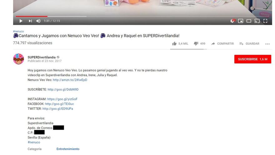 Hay numerosos canales de reviews de juguetes de niños youtubers españoles. Muchos de ellos ponen la dirección a la que enviar los juguetes al final de la descripción de sus vídeos, aunque no avisan de sus contenidos están promocionados. Según la legislación española, el pago en especie debe interpretarse de la misma forma que uno económico en lo referente a la publicidad encubierta.