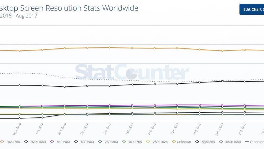 Según recogen en StatCounter, una empresa de Irlanda que utiliza datos globales para elaborar estadísticas, 1366 x 768 sigue siendo la resolución dominante y no parece que vaya a dejar de serlo en poco tiempo. ¿Qué significa esto? Pues que, si reproducimos un capítulo de una serie en nuestro portátil, este solo alcanzará su resolución nativa: los 720p. Además, entre otras cosas, también condiciona el espacio de trabajo disponible en pantalla y el tamaño de todo lo que aparece en ella.