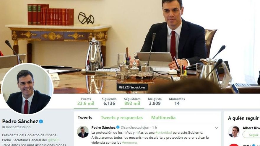 El tercer dirigente político que más seguidores pierde es el actual presidente del Gobierno, Pedro Sánchez. El jueves, la cuenta de @sanchezcastejon sumaba algo más de 892.000 followers, que se convirtieron en 882.000 tras la limpieza. Unos 10.000 seguidores menos que, en porcentaje, supone una variación negativa del 1,2%.