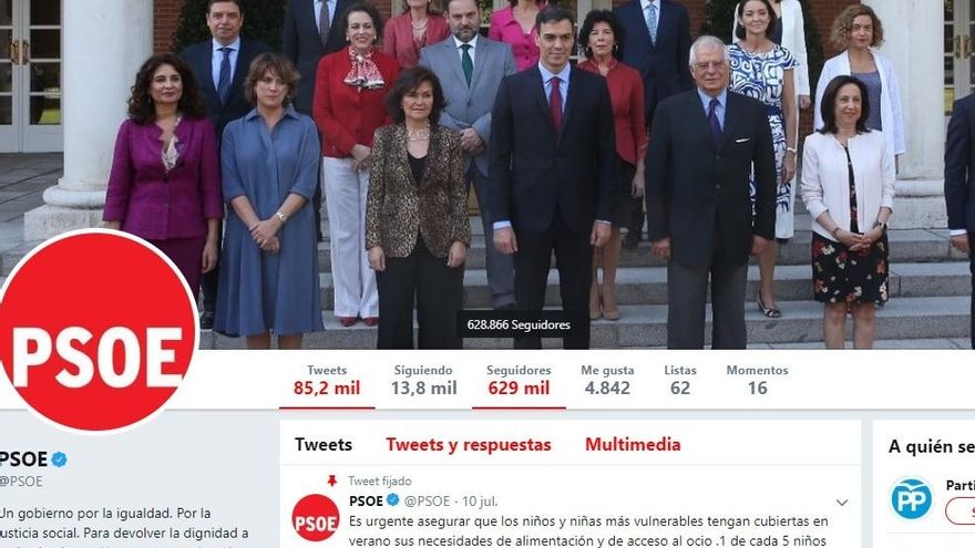 Las redes sociales del PSOE, en cambio, apenas han notado ninguna variación. La cuenta principal sumaba, antes de la omisión desactivadas, casi 629.000 seguidores. Después de la limpieza se han quedado en 624.000, unos 5.000 menos, lo que representa un descenso del 0,8%.