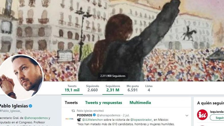 Como Podemos, Pablo Iglesias también es el político español que más seguidores tiene en Twitter y el que más ha perdido, con una variación negativa del 3,5% equivalente a 80.000 cuentas menos. El jueves por la mañana, el líder de Podemos contaba con 2,31 millones de seguidores. Un día después, suma 2,23 millones.