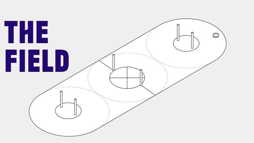 Las reglas del juego establecen que las manos y los pies se pueden utilizar indistintamente para realizar un pase y que el campo es el resultado de dibujar en el suelo tres círculos consecutivos de 1,52 metros de diámetro. Los dos círculos exteriores son las porterías, que tienen dos postes clavados para delimitarlas y el del centro solo se utiliza para los saques iniciales y ganar la posesión. Además, si un jugador lo cruza, comete falta.