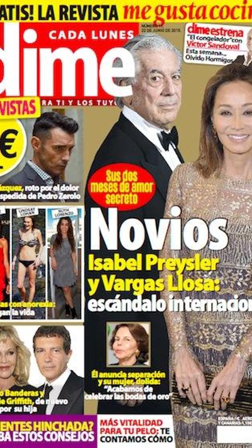 Las revistas del lunes muestran la incipiente relación de Mario Vargas Llosa e Isabel Preyler y la posible cita de la Princesa del Pueblo y su nuevo torero. Además, Interviú desnuda a las polémicas televisivas