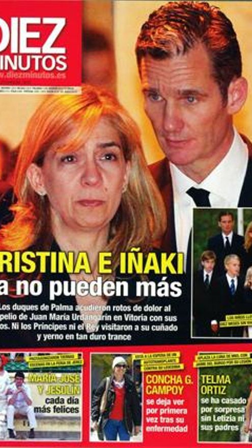 DIEZ MINUTOS, SEMANA Y LECTURAS dedican las tres sus portadas a Urdangarin y Cristina, de funeral, e informan, con fotos de archivo, de la boda de Telma que da Hola en exclusiva. También dan, en portada (Diez Minutos y Lecturas), las primeras y muy esperanzadoras fotografías de Concha García-Campoy, que aguarda con optimismo su auto trasplante de médula. Por cierto que Diez Minutos dice “Autotransplante de médula”, con una N por ahí en medio. El que esté libre de pecado…