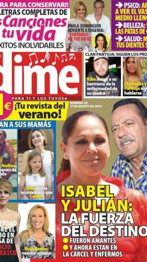 La revista Dime, además, destapa la verdad sobre el robo en casa de Rocío Carrasco. También da más claves sobre el clan Pantoja y el destino que vuelve a unir a la tonadillera y a Julián Muñoz. Además, la publicación también ofrece las letras de canciones más populares, para pasar las noches de verano en familia.
