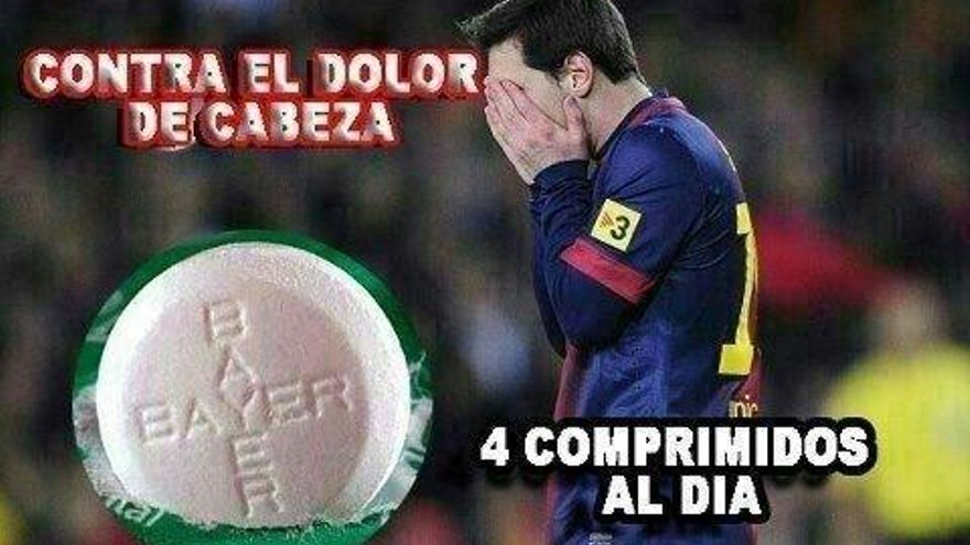 El juego de palabras de una conocida marca de aspirinas y el Bayern Múnich desató el ingenio popular dándole un consejo muy útil a Leo Messi.