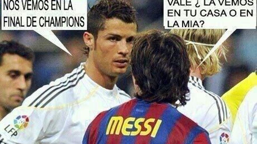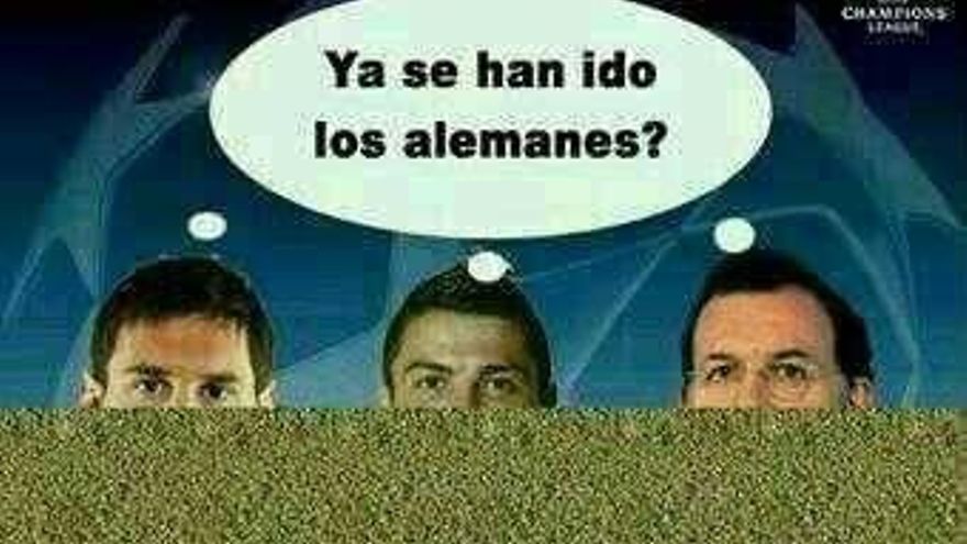 Las estrepitosas derrotas de Barcelona (4-0) y Real Madrid (4-1) ante el Bayern Múnich y Borussia Dortmund respectivamente desataron en las redes sociales y el popular whats ' up una serie de imágenes que fueron apareciendo de teléfono móvil en teléfono móvil con un tono de humor que no conviene olvidar a la hora de disfrutar del fútbol.