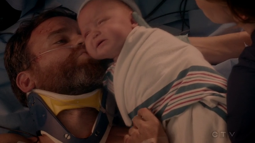 Pero antes de comenzar con el procedimiento, Meredith le lleva a su hijo recién nacido para que pueda verle en caso de que no logre sobrevivir. Finalmente, tanto él como su novia y madre de su hijo consiguen sobrevivir (ella se había roto el cuello y tenía múltiples hemorragias de dar a luz).
