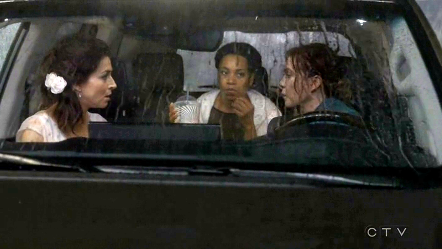 Las tres se van a por unos granizados, y con tanto tira y afloja, Amelia decide casarse (pasada por agua por el diluvio que cae ese día).