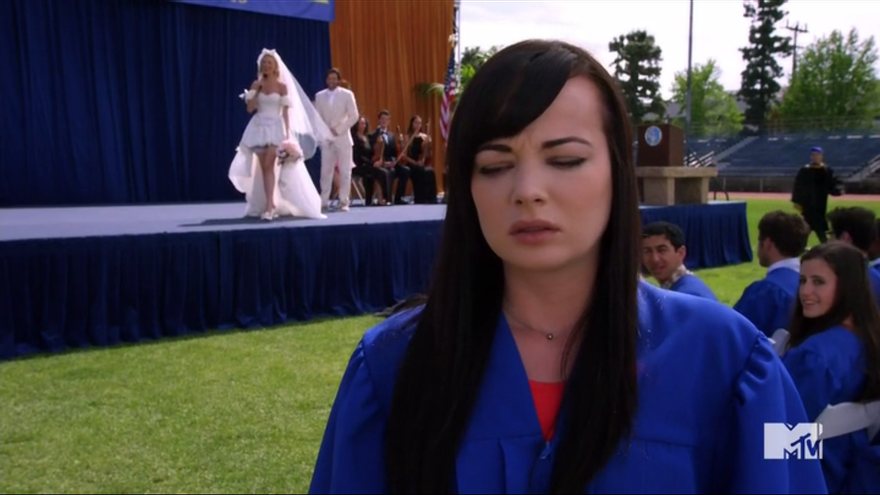 De este modo, Jenna decide ir a buscarla y con, nuevamente, un discurso distinto, pretende convencer a Sadie de ir y ¿darle las gracias? ¿por qué? Bueno, resulta que Jenna está agradecida de que su archienemiga la hiciese luchar todos los días y hacerse más fuerte. Tras este discurso, Sadie sigue sin querer ir y Jenna se marcha de nuevo a la graduación.