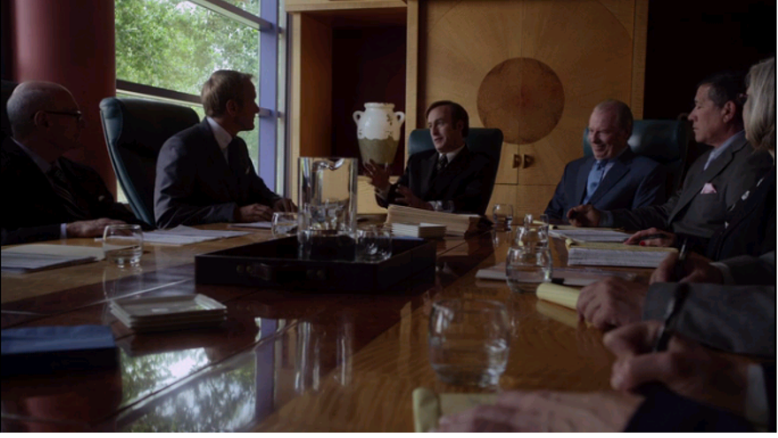 Una vez se presentan en los despachos de HHM, justo después de que Chuck – que, recordemos, ahora empieza a pisar la calle poquito a poquito – sea ovacionado como ni él mismo habría imaginado, las cosas empiezan a torcerse. Hamlin está dispuesto a pagarle 20000 dólares por haber sido quien entregara el caso pero está muy lejos de querer que Saul se instale en el bufete. Éste, por su parte, prefiere quemar los papeles si es necesario antes de entregar el caso a una persona que odia tanto como al hombre del azul hamlíndigo.