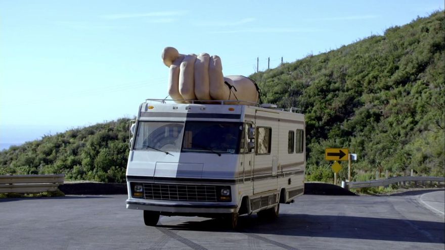 Abed influye en estos tres días antes para intentarnos explicar cómo han llegado a viajar juntos con esa mano gigante. Pero no nos hace falta este tipo de flashbacks. Cuando el episodio se “embotella”, es decir, cuando la caravana se queda sin gasolina y sin batería (todos cargando los móviles en un alarde de inteligencia), se conoce todo: la mano, del Decano, la llevan a un comprador de ebay para tener un beneficio extra enGreendale.