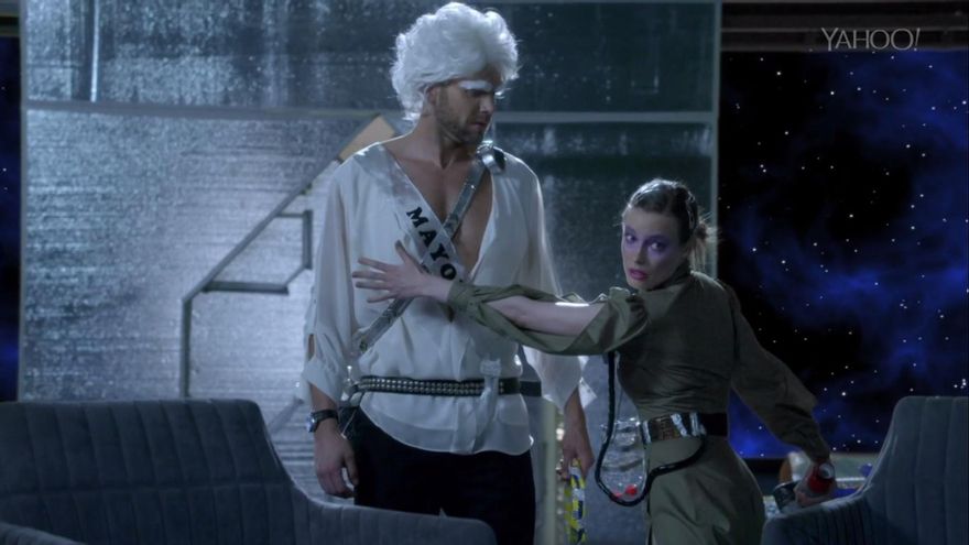 Todo empieza con el fenómeno viral a raíz de un anuncio televisivo donde, el ya actor (negociando con Spielberg, incluso), Chang suelta un chascarrillo que se convierte en la moda del mes. Su “¡HAAAAAM GIRL!” se convierte en el “Yo no he sido” (referencia de ‘Los Simpson’) de ‘Community’. Para aprovechar su tirón mediático, como suele ocurrir en muchas películas de Hollywood (y no sólo en Hollywood), un productor amigo de Frankie (Steven Guttenberg) está dispuesto a invertir en una película que se produzca a partir de unos fragmentos que Chang rodó con Abed tiempo atrás para una película de temática policial. Pero dicho género no vende y el productor decide ambientarla en un lugar donde sí lo haga: el espacio. Aquí se recurre a la coña del fenómeno actual Chris Pratt y algo que sí vende: “dinosaurios, extraterrestres, o algo donde aparezca Chris Pratt”