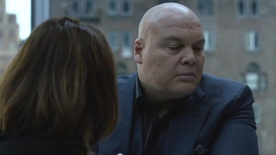 De todos menos de uno: Wilson Fisk. La buena elección de Vincent D'Onofrio para interpretar a uno de los mejores villanos vistos en televisión, es uno de los puntos fuertes de 'Daredevil'. Gracias a él y a su potente y torrencial voz, podemos escuchar con especial tensión la historia bíblica del buen samaritano que nos relata mientras le trasladan en un furgón a la cárcel. Efectivamente Fisk no es el buen vecino del cuento, por mucho que hasta ahora se haya esforzado en creerlo, él es, más bien, todos los hombres malos que se cruzan en el camino del viajero. Y eso precisamente es lo que gusta de él.