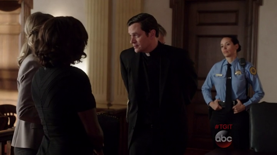 Aunque esto podría librarle de la cárcel, el sacerdote se niega a prestar testimonio ya que el otro religioso se lo contó bajo secreto de confesión. Cuando Annalise se da cuenta de que no conseguirá nada por esta vía, habla con la mujer con la que mantiene un amor platónico y ella testifica haber mantenido relaciones sexuales con él la noche de asesinato.