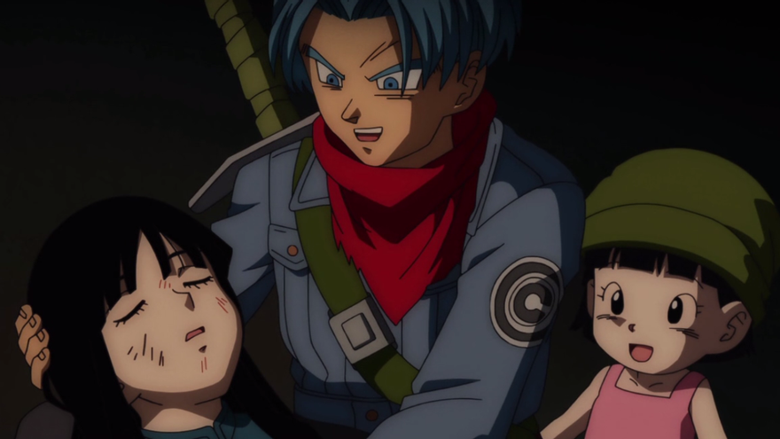 En el refugio se encuentran con la noticia de que Mai está malherida como consecuencia del último ataque de Black. Allí llegan con suministros para todos y, ahora sí, con alubias mágicas para recuperar a Mai. Trunks lo hace con un emotivo beso que muestra el amor que hay en la pareja. Por cierto, amor que se repetirá con sus versiones jóvenes después de la marcha de éste.