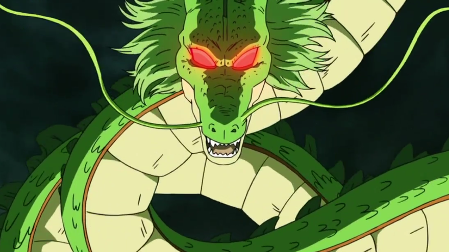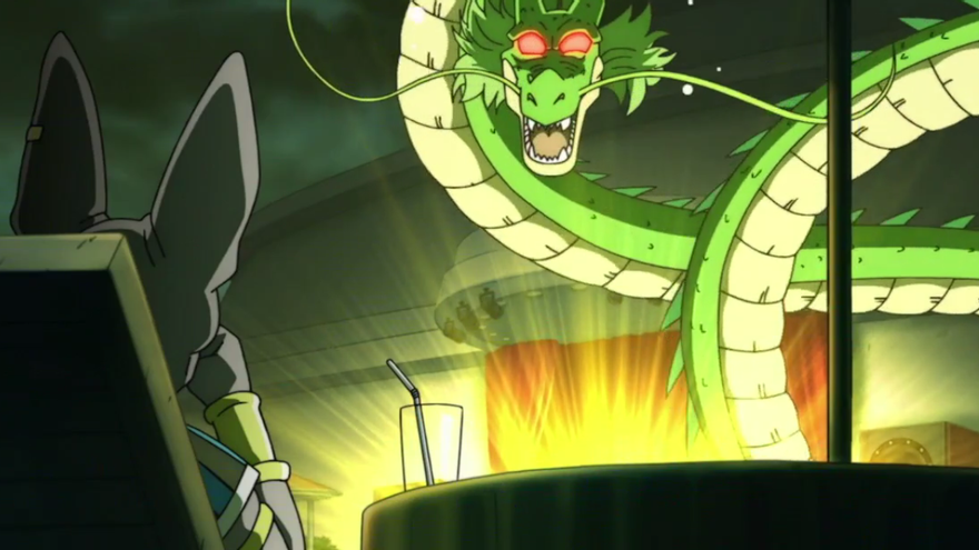 Cabe destacar que Shenron, cuando comprueba que el deseo es utilizado para satisfacer una necesidad de Bills, cambia como nunca jamás lo habíamos visto. El dragón mágico llega a tal punto de pánico hacia el Dios de la Destrucción que se marcha rápidamente tras cumplir el deseo.