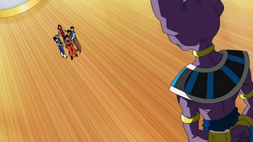 Wiss, el acompañante de Bills, les hace ver su error. Les dice que, además de que están compartiendo sólo energía y no el corazón, necesitan un saiyan más. Son cinco, cierto, pero la leyenda dice que cinco corazones saiyans deben compartirse con un sexto.