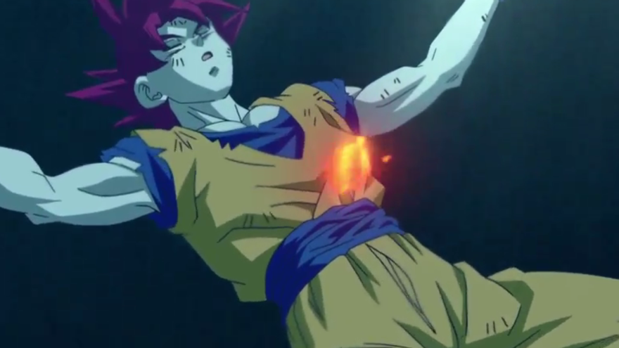 El poder del Super Saiyajin Dios va más allá de lo que todos pensamos, e instantáneamente vemos como sana la herida de su corazón. Goku, cual Ave Fénix, está recuperado y más fuerte que nunca.