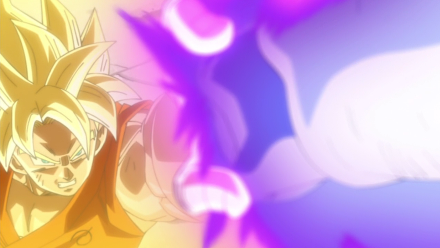 Goku se transforma en Super Saiyan (cosa que inquieta a los componentes del Universo 6, algo que ni su propio saiyan había visto jamás) y Frost hace lo propio llegando a su forma final. Una transformación muy similar, también, a la última forma de Freezer.