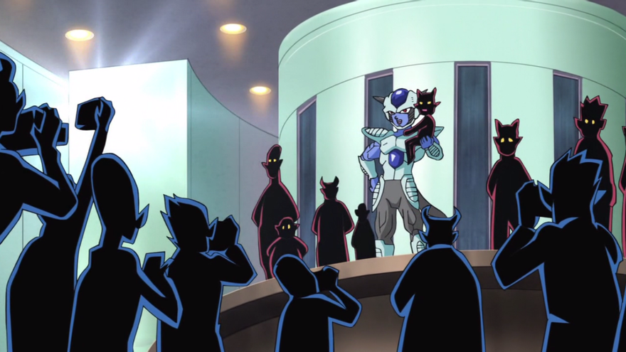 Esto lo comprobamos nada más hacer presencia en el ring donde saluda amablemente a Goku y le felicita por la victoria en el combate anterior. Asimismo saluda también al público presente. Nadie se lo cree, ¿ése es como Freezer?