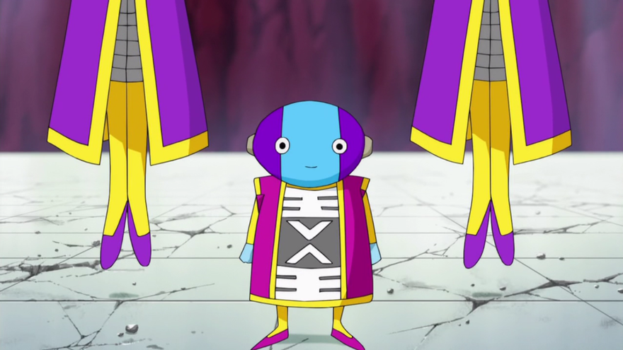 Según ellos se llama Zeno, y es un colorido y diminuto ser con una simpática apariencia humanoide y una cabeza con forma de limón o de balón de fútbol americano. A su vez, está escoltado por dos seres misteriosos de gran estatura y rostro serio. ¿De este tipo tienen tanto miedo Champa y Bills?, ¿quién es este Zeno?