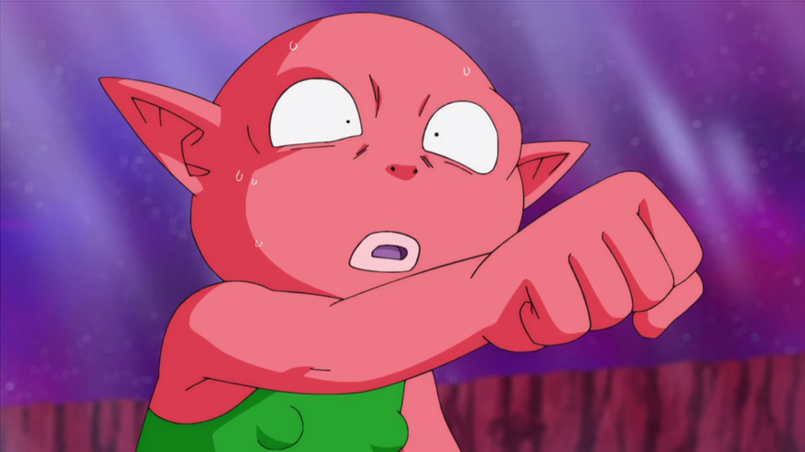 Tras perder la apuesta con Bills (es decir, el Torneo Universal), Champa, como un mal perdedor, se llena de ira y amenaza de muerte, primero a Hit, y luego a todo su equipo. Es más, carga un ataque para acabar con ellos inmediatamente, pero cuando está a punto de lanzarlo alguien que hace presencia en el ring le deja sin palabras. A Bills también.