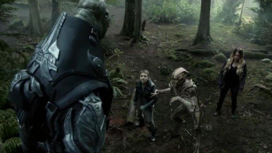 Y ahora va el pavo de Anthony, que está cada día más tonto. Le hace el relevo a un compañero para vigilar al espheni. El alien coge un poco de tierra que convierte en una esfera roja, como ya hemos visto anteriormente es una forma de comunicarse. La muestra y Anthony le dispara hasta destrozarle la cara y matarle. Le retiran su arma, para que no haga más daño, su conducta está siendo penosa.