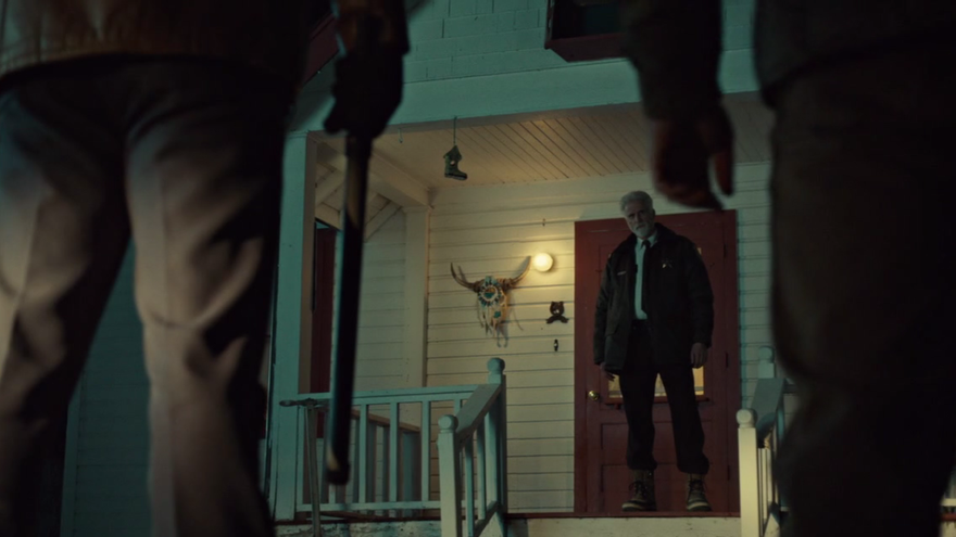 El Sheriff le explica a Dodd y los suyos que Ed está en comisaria, pero no tiene tiempo para explicar más porque Hanzee le golpea por detrás dejándole inconsciente. Dodd, entonces, le manda a la comisaría y él se encargará de examinar el interior de la casa.