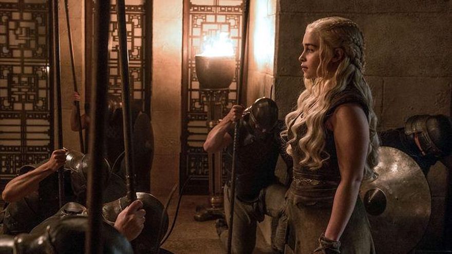 A Tyrion las cosas no le han salido como pensaba. Es verdad que, comentándole a Varys mientras pasean por Meereen, la paz ha llegado a la ciudad; sus integrantes ríen, animados, y caminan sintiéndose seguros por sus calles. Pero lo que todavía no sabe, es que esta es solo provisional. Tras despedirse del eunuco, que se embarca en una desconocida misión que, imagino, tiene como meta adquirir aliados que apoyen la causa de la Madre de Dragones en Poniente, y una ronda de los peores chistes que he oído en mi vida (y mira que en Navidad mi familia se echa algunos que pa' qué) con Missandei y Gusano Gris (cata de vinos incluida), el gobierno encabezado por el enano en funciones observa desde La Gran Pirámide cómo lo que parecen ser decenas de buques se acercan a la ciudad con intención de hacerla suya.