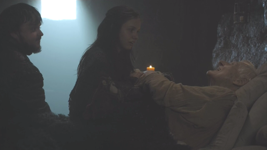 En la última noche del anciano, en la que incluso empieza a delirar con el hijo de Elí, la relación entre Sam y Elí (ambos le cuidan) se forja sentimentalmente. Tras su muerte y posterior funeral en la hoguera, Sam se encuentra solo en el Muro después de la marcha de dos personas imprescindibles para él y tal como le recuerdan: “estás perdiendo a tus amigos, Tarly”. Sin embargo, todavía le queda la persona más importante y a la que ama: Elí.