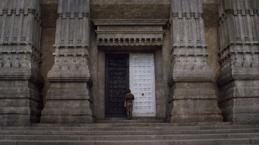 Una grandiosa estatua de piedra gobierna en el horizonte de 'Juego de tronos'. Es el Titán de Braavos. Por fin Arya Stark, libre de ataduras, ha llegado a su destino: la casa de Blanco y Negro (nombre del episodio). Allí, se espera encontrar con Jaqen H'ghar después de la moneda que le dio, pero negativo. Un anciano con túnica que vive allí dice no conocer a nadie con ese nombre y le cierra la puerta en sus narices. Arya, que “no tiene miedo a nada” permanece día y noche, llueva o truene, en la puerta de la casa de Blanco y Negro, recitando su ya conocida lista personal del odio (eso sí, modificada con los últimos acontecimientos). Sin obtener respuesta renuncia a la moneda de su querido “hombre sin rostro” Jaquen H’ghan arrojándola al mar.