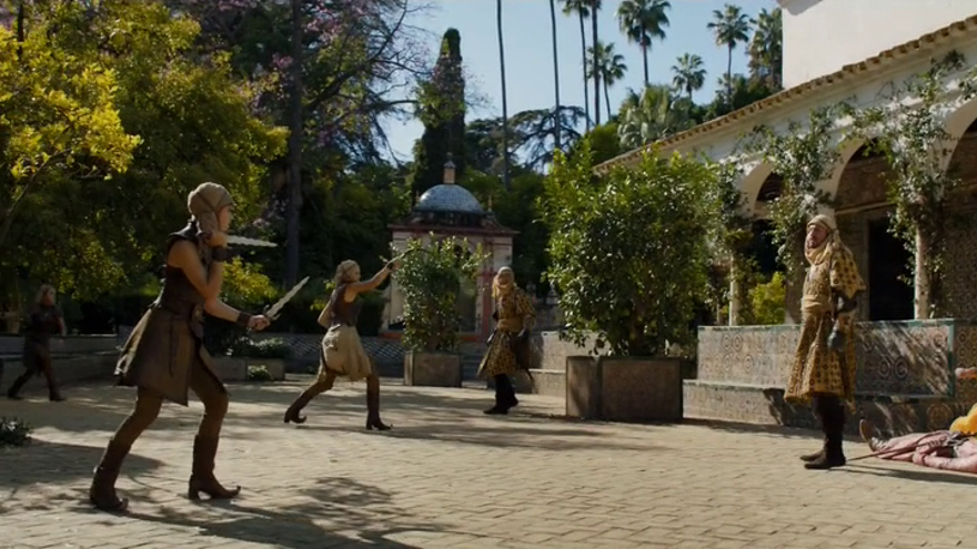 En este capítulo hemos podido ver dos de los mejores caballeros del reino enfrentarse a las que se suponen que son las guerreras más mortíferas de todo Dorne. Y el resultado ha sido una lucha de niños muy patética.