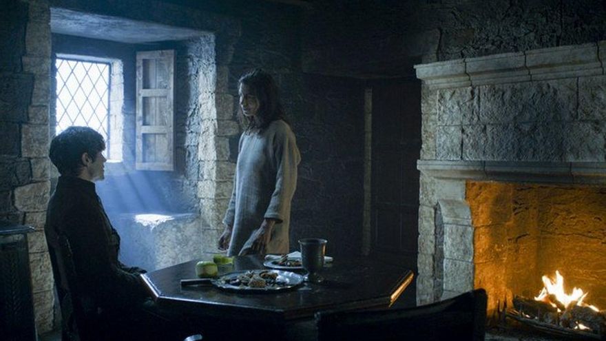 Mientras tanto, en Invernalia Ramsay se está marcando un “Drapple” (o la cuanto menos curiosa manía de parte del fandom de ‘Harry Potter’ por emparentar a Draco Malfoy con la manzana que se come en la tercera película). Entonces entra Osha en sus aposentos y Ramsay pregunta que si le han lavado bien. Uno aprende a sumar y, al igual que la salvaje, cree entender las perversas intenciones del joven Bolton para con ella (para con su cuerpo, más bien).