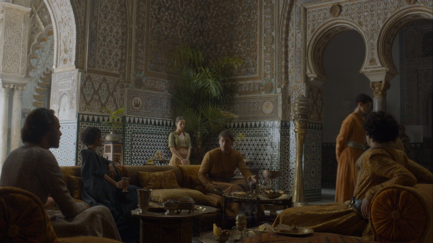En el encuentro entre Jaime Lannister y la Casa Real de Dorne, encabezada por Doran Martell, su hijo, Trystane; la prometida de éste, Myrcella Baratheon; y Ellaria, se discuten los términos del objetivo que buscaba Jaime en su visita poco diplomática al reino dorniense. Aquí se decide finalmente que la princesa Myrcella puede volver a Desembarco del Rey, siempre y cuando Trystane vaya con ella formando parte así del Consejo Privado del Rey Tommen.
