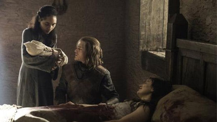 Y aunque la hermosa Lyanna tiene miedo a la muerte, más miedo tiene de que su hijo encuentre, quizá, peor destino que ella. Así que, naturalmente, pide a su hermano que le proteja y cuide como uno más de los suyos. Entonces la matrona le entrega el bebé, que Ned toma en sus brazos, y Lyanna reúne las fuerzas suficientes para acercar sus labios a su oído y pronunciar unas palabras que Brandom no llega a oír, pero que nosotros sí podemos intuir; por la cara de sorpresa de Eddard, probablemente la joven le haya revelado la identidad del padre de su primogénito: Rhaegar Targaryen, hijo del Rey Loco y hermano de Daenerys.